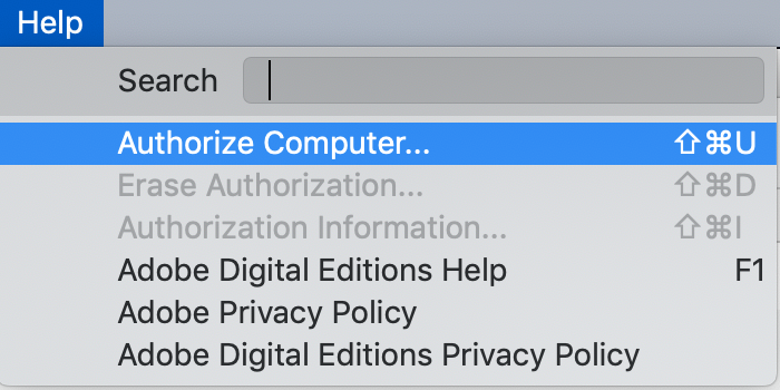 Aide en ligne Prêt Numérique Startup Guides Reading on a e-reader Reading on other e-reader models Transferring an ebook to your e-reader from a Mac computer Current: Entering your Adobe ID in Adobe Digital Editions for Mac Entering your Adobe ID in Adobe Digital Editions for Mac If you already have have entered your Adobe ID in the Adobe Digital Editions application, proceed directly to Borrowing an ebook and download it to your Mac To read ebooks borrowed from your library, you must authorize your Mac with Adobe Digital Editions by entering your Adobe ID.Open the Adobe Digital Editions application on your Mac. You can access your applications by opening a new Finder window:Click on your Mac's desktop.From the menu, click File.Click New Finder Window.In your Finder window, click Applications.Click Adobe Digital Editions.Click Help on the menu.Click Allow Computer...Enter the email address and password used in Creating an Adobe ID on your Mac.Click Allow.Adobe Digital Editions can now be used to read ebooks borrowed from your library. You will no longer need to repeat the previous steps. ×